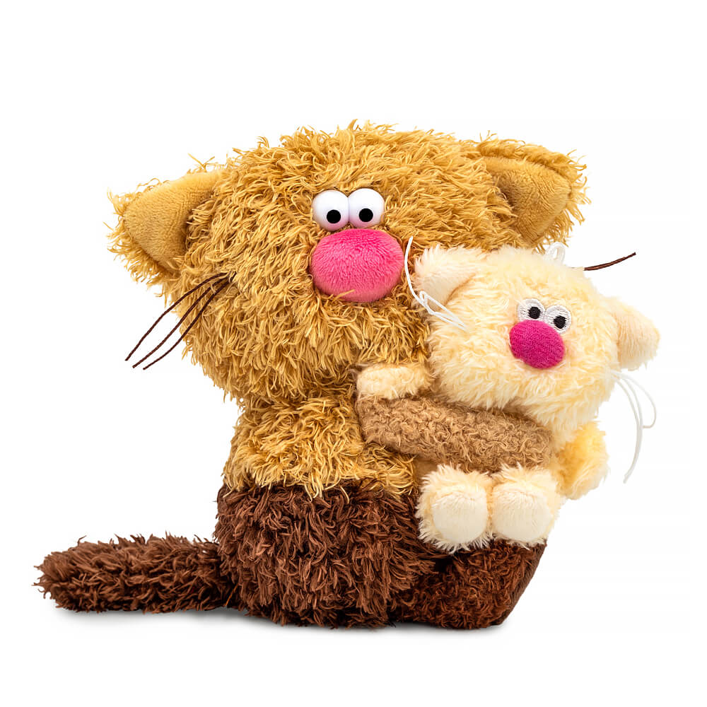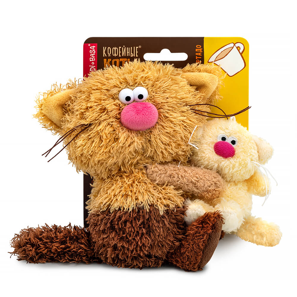 The cute Cortado coffee cat is made of tactilely pleasant eco fur in two shades, chocolate and shortbread. The cat has a friend, the cream kitten. It's just more delicious! The Cortado cat holds the cream kitten, which is made of creamy eco fur, in its paws. Only in the "Syropchiki" collection, the coffee cat's head rotates 360° thanks to a special rotating mechanism. The kitten syrup has a loop on its head and can be used as a keychain. Each coffee pair has its own individual base.