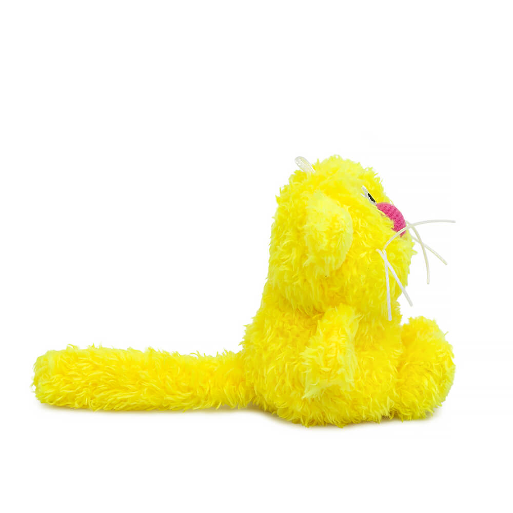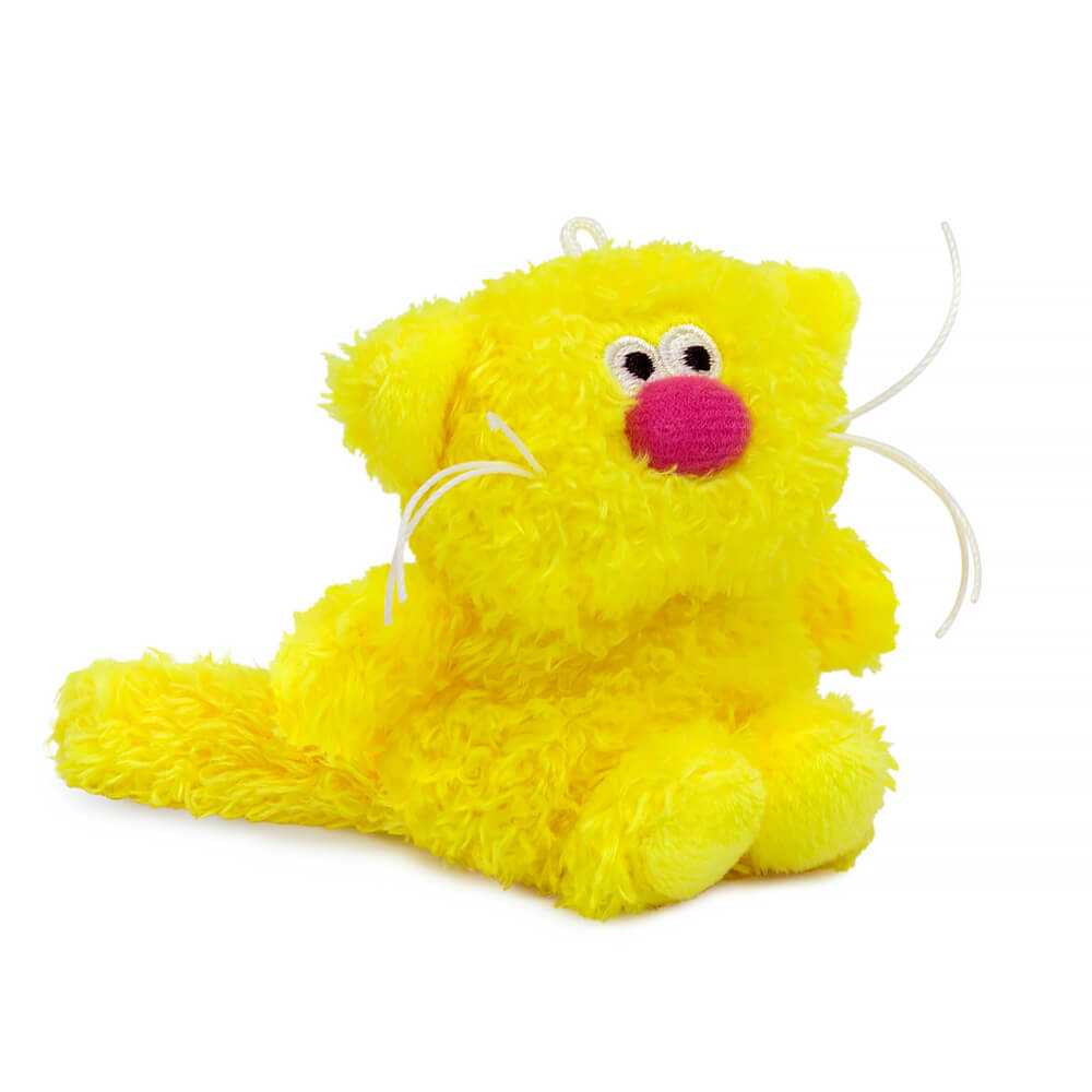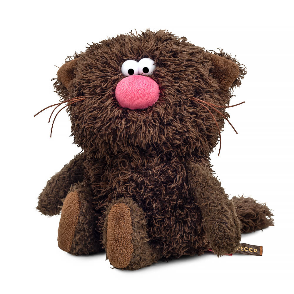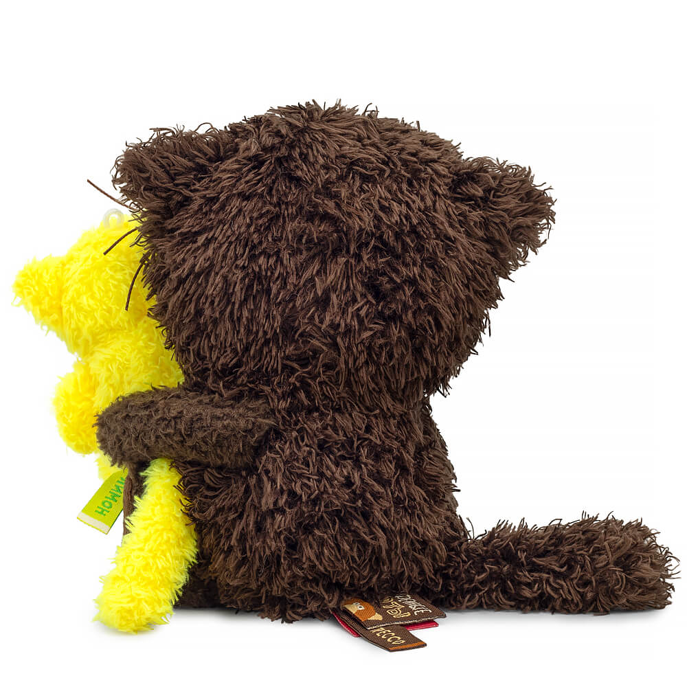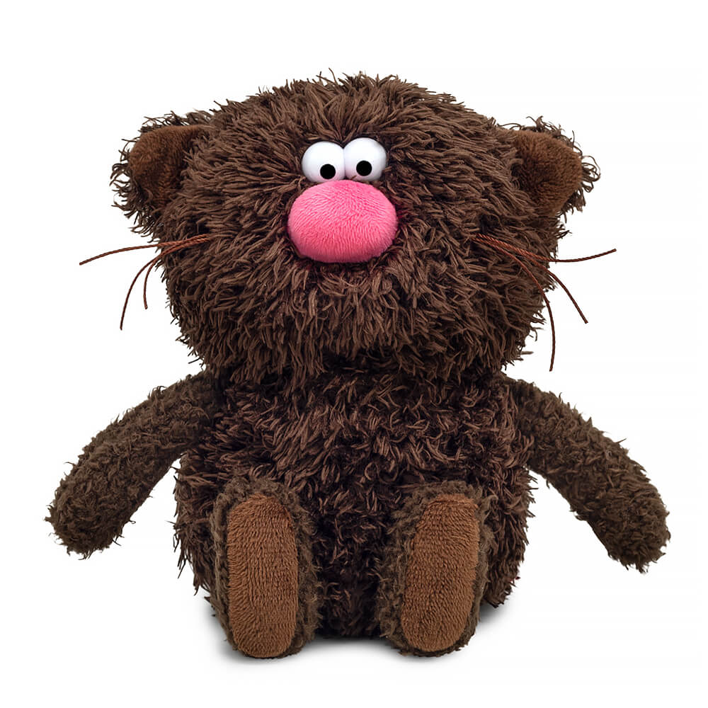 A cute Espresso coffee cat made of tactilely pleasant eco fur in the color of bitter chocolate. The cat has a friend, a Lemon kitten made of bright lemon eco fur. It's just more delicious! Espresso coffee cat holds a baby Lemon kitten in its paws, made of bright lemon eco fur. Only in the "Syropchiki" collection, the coffee cat's head rotates 360° thanks to a special rotating mechanism. The kitten has a loop on its head and can be used as a keychain. Each coffee pair has its own individual base.